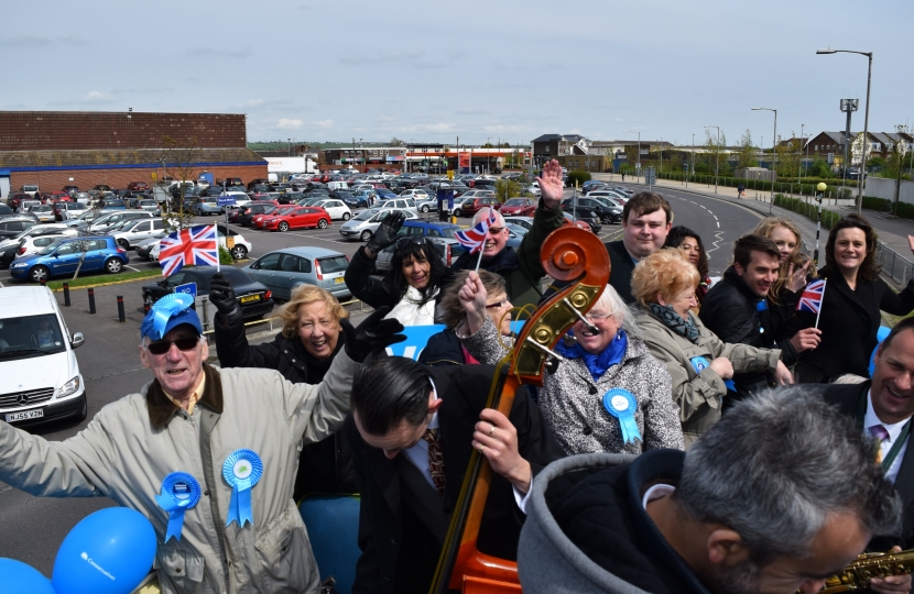 The Zoltans played on an open top bus for Conservative Election candidate Rebecca Harris travelling around Canvey Island, Benfleet, Thundersley and Hadleigh.