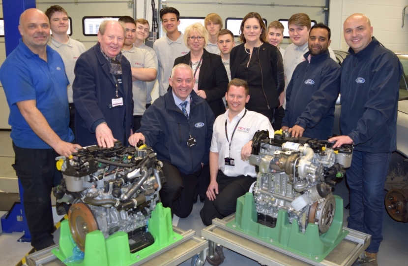 Ford UK have donated two top of the range Tiger Engines made in their Dagenham plant to the Canvey Skills Campus, operated by PROCATs college, along Somnes Avenue. The donation follows a visit made by Castle Point MP Rebecca Harris to the plant, where she talked to managers at the plant about what could be done to increase links with Ford and local colleges in Castle Point.