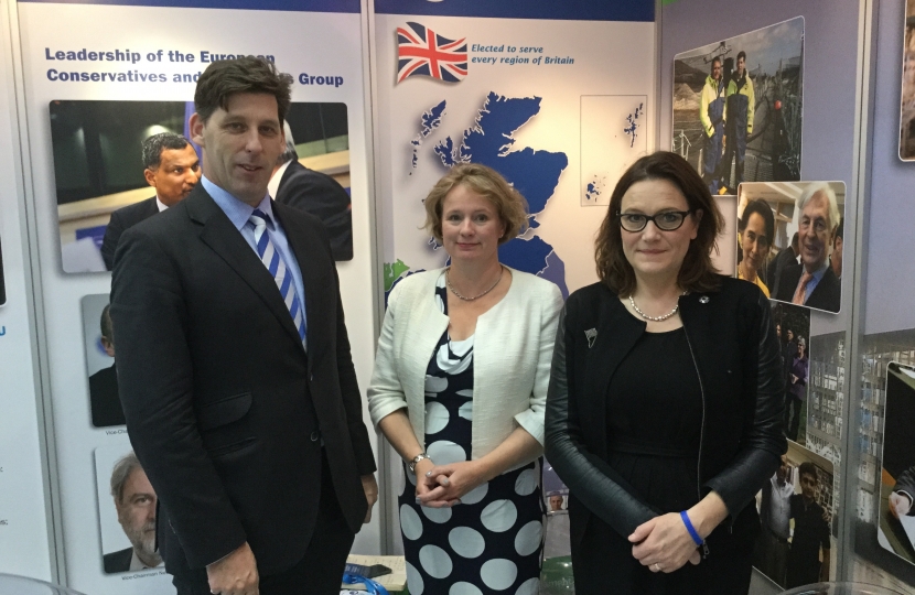 Castle Point Member of Parliament Rebecca Harris met with Dr Ian Duncan MEP, the Conservative Spokesman for Energy in Brussels, to discuss the importance of safety measures for COMAH sites. The MP met with Mr Duncan at the Conservative Party conference in Manchester along with East of England MEP Vicki Ford.