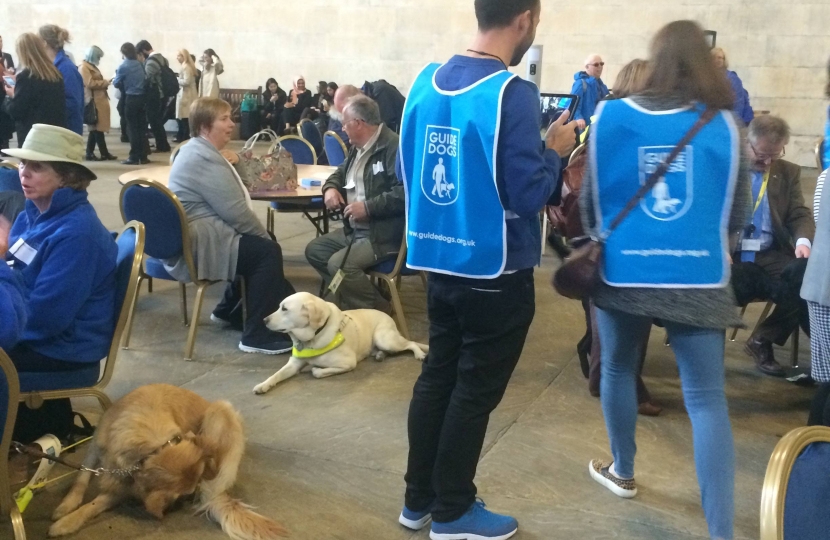 Rebecca Harris MP met with guide dog owners in the Houses of Parliament to hear about their experiences of being turned away by businesses. Over 100 guide dog owners had travelled to Westminster from across the country to talk to their MPs about the discrimination they face in their daily lives.